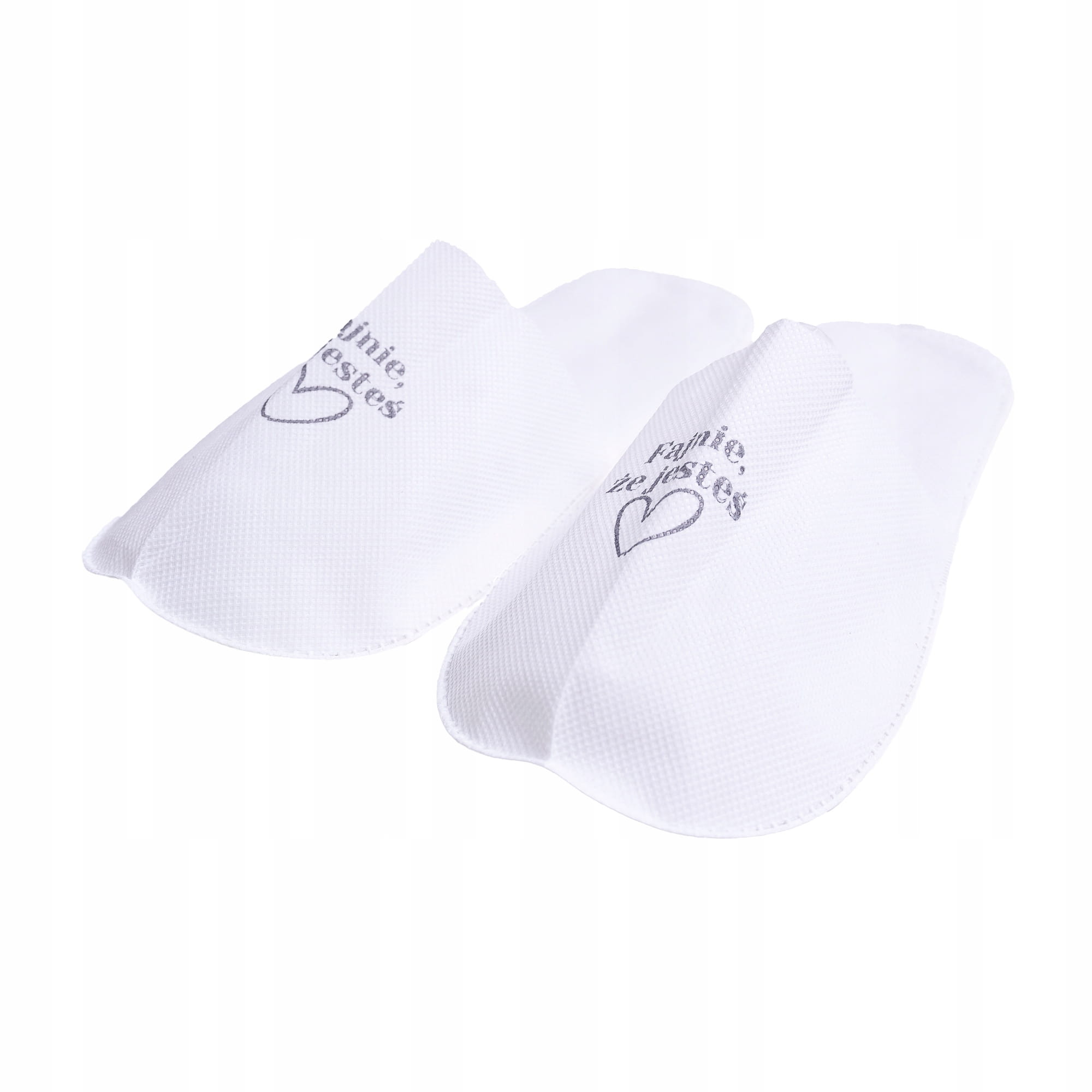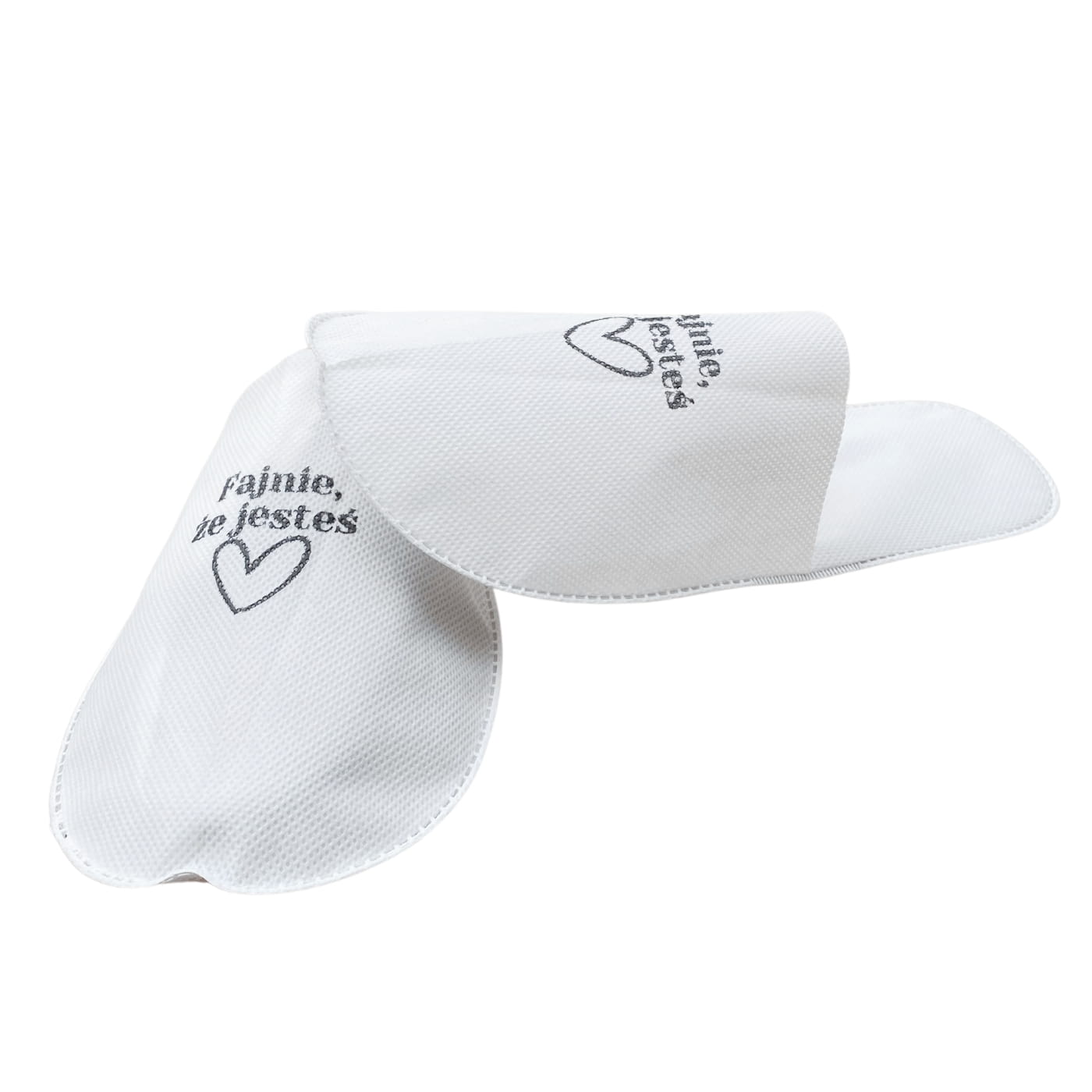Kapcie z Nadrukiem "Fajnie, że jesteś" - Pakowane Pojedynczo, 50 par - QMS Line Standard